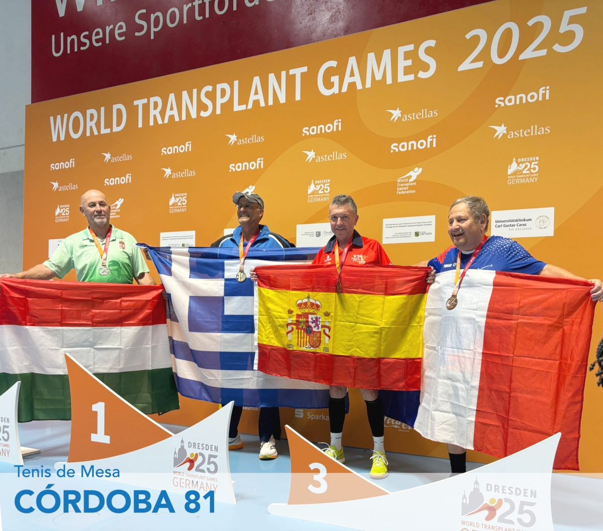 Nuestro deportista Francisco Navarro 🇪🇸 ha conseguido MEDALLA DE BRONCE en la categoría 60-69 tenis de mesa individual de Tenis de Mesa 🏓en el "25TH WORLD TRANSPLANT GAMES 2025" Dresden, Alemania.